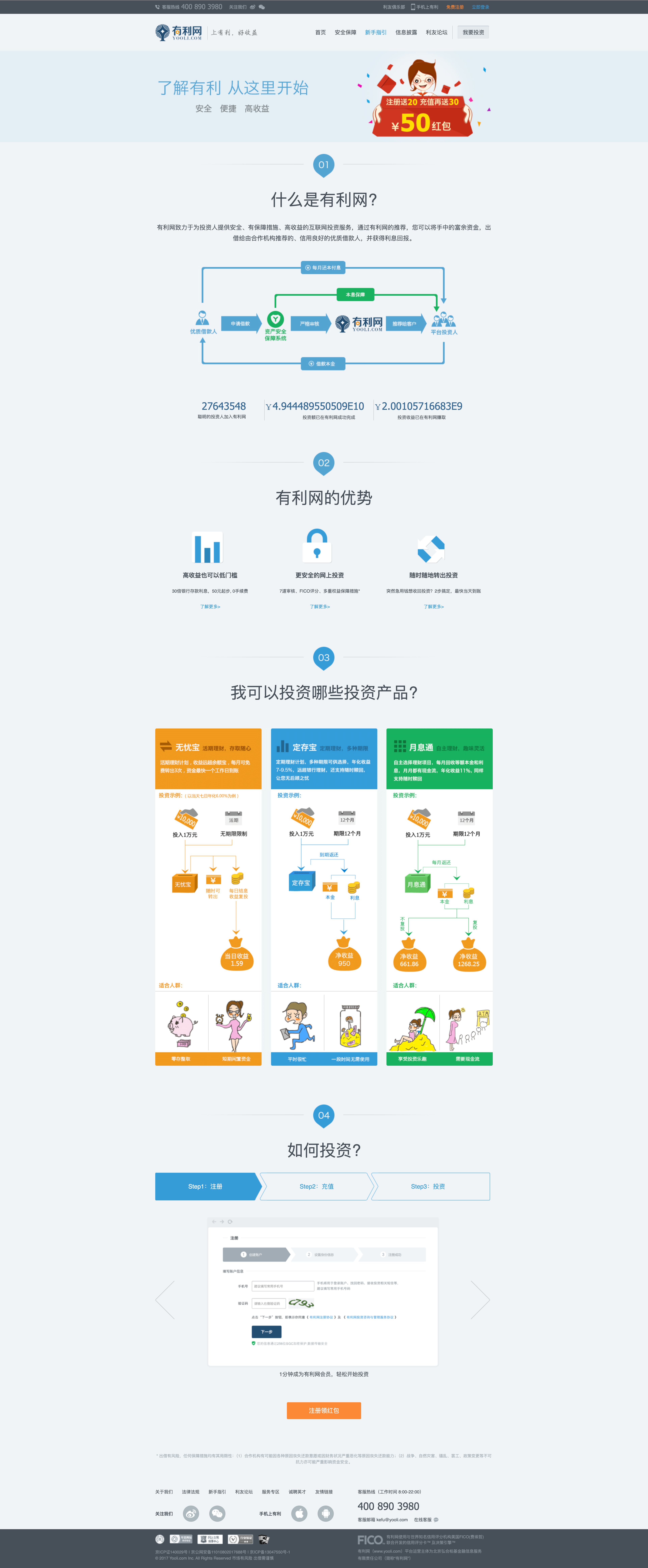 1. 2014年官网首页截图和邮件截图(证据1-1至证据1-3)显示,有利网在多个产品页面及介绍中广泛宣传“本息保障”或“100%本息保障”等用语;
