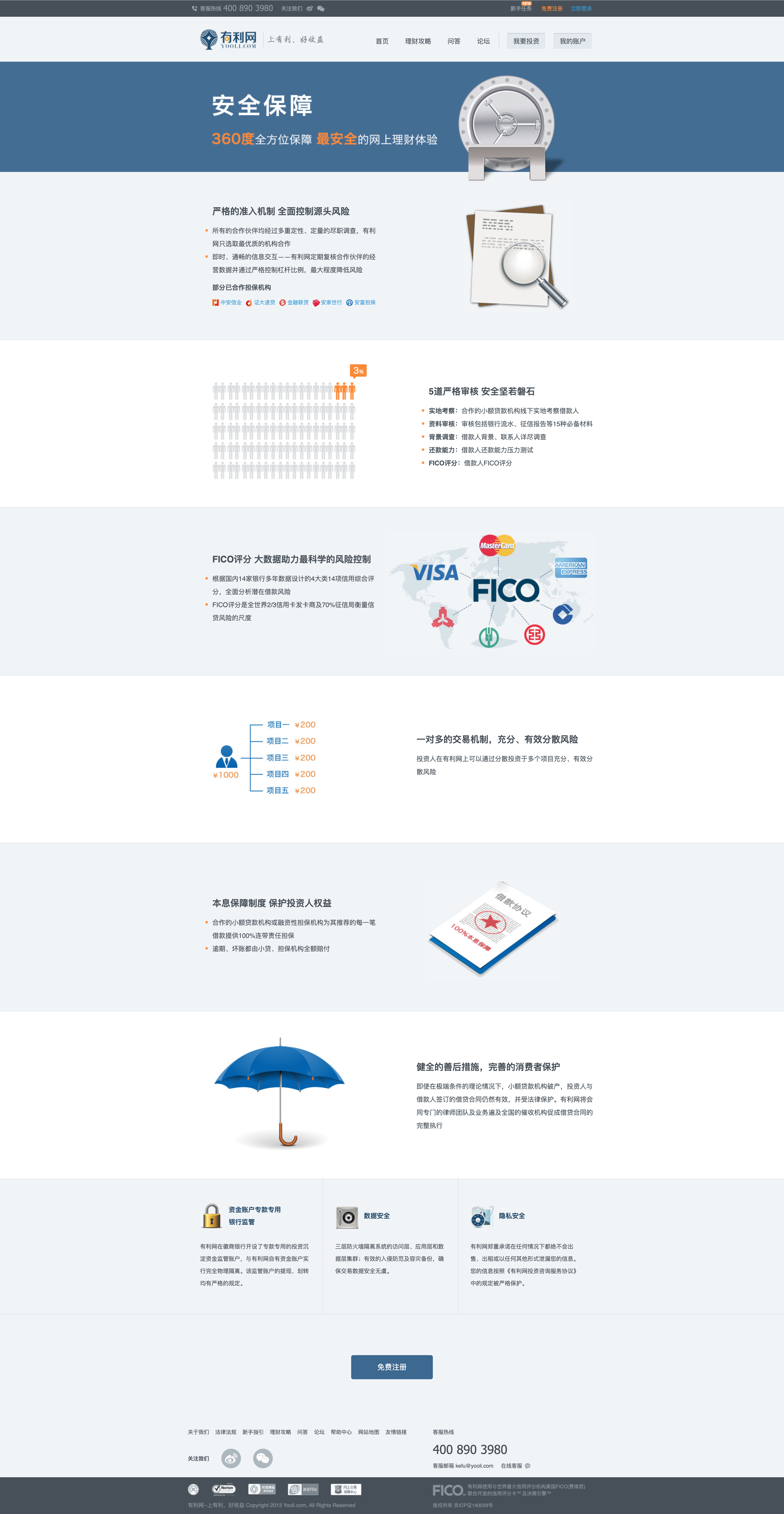 1. 2014年官网首页截图和邮件截图(证据1-1至证据1-3)显示,有利网在多个产品页面及介绍中广泛宣传“本息保障”或“100%本息保障”等用语;